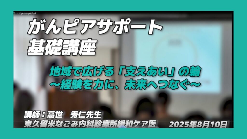 がんピアサポート基礎講座・高世先生講演のアーカイブ配信開始しました